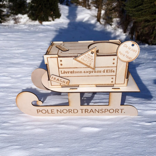 Traîneau boîte arrivée du lutin farceur de Noël